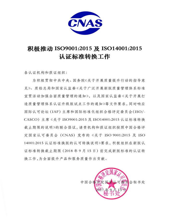 ISO9001和ISO14001認(rèn)證轉(zhuǎn)換截止說(shuō)明